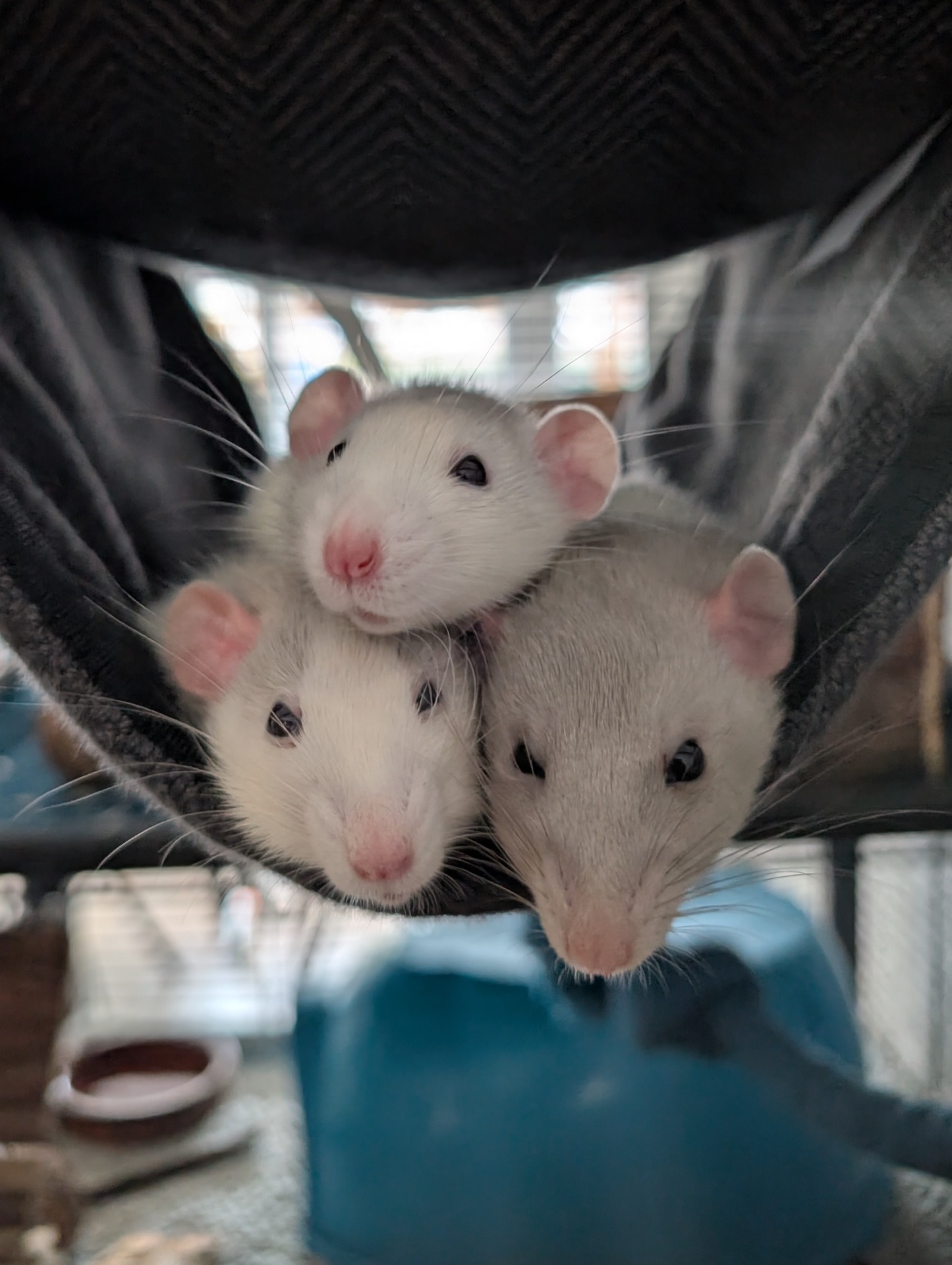 Binnenkort dropt ik de eerste filmpjes van mijn nieuwe lieve vriendjes: Streep, Storm en Stitch – drie supertamme, nieuwsgierige ratten!